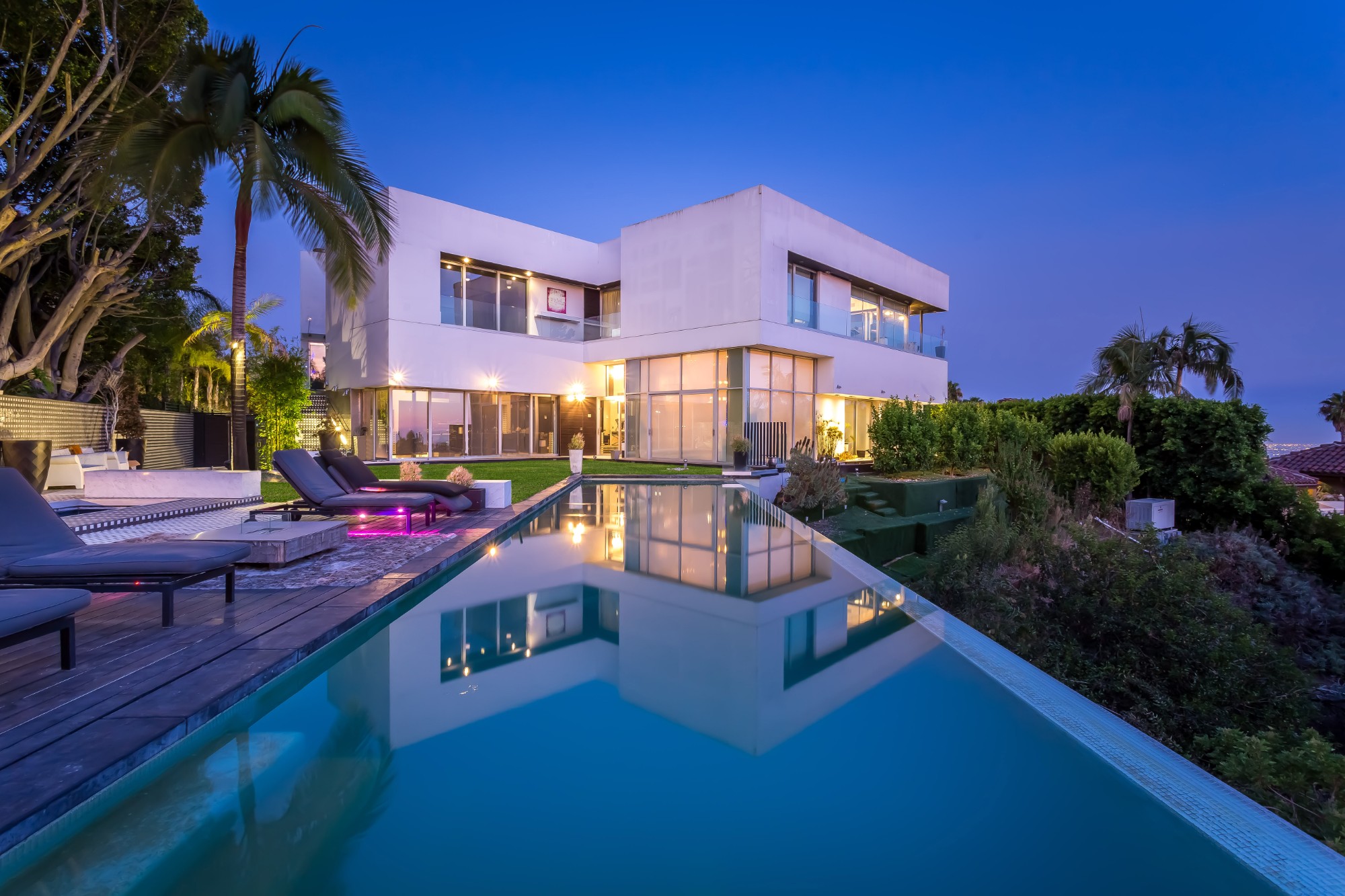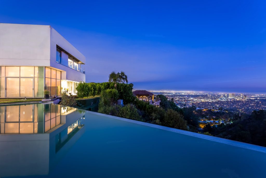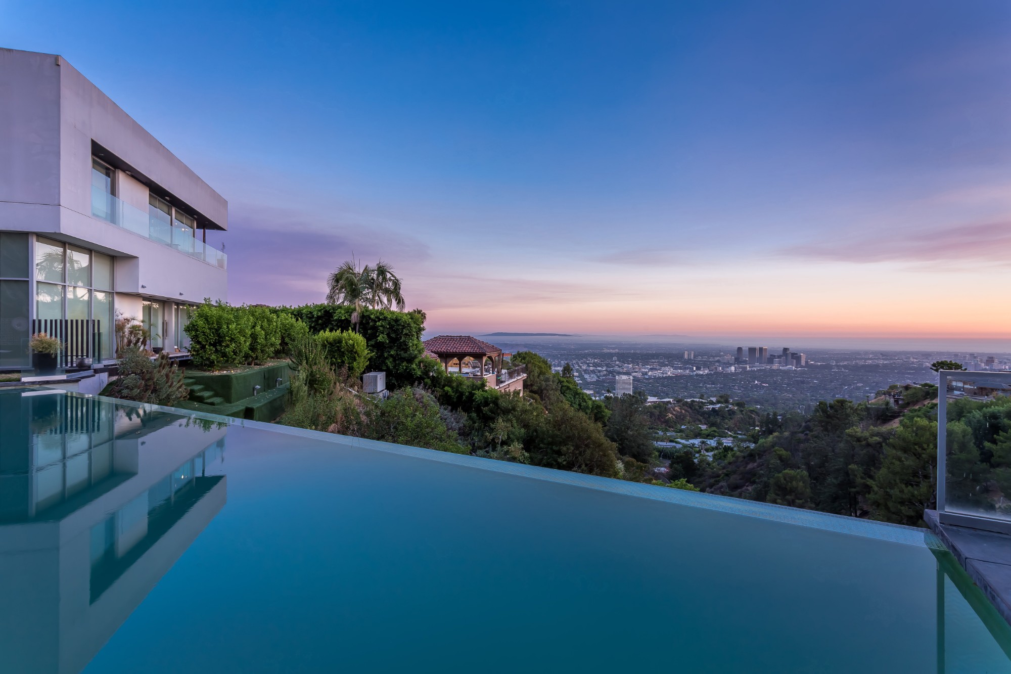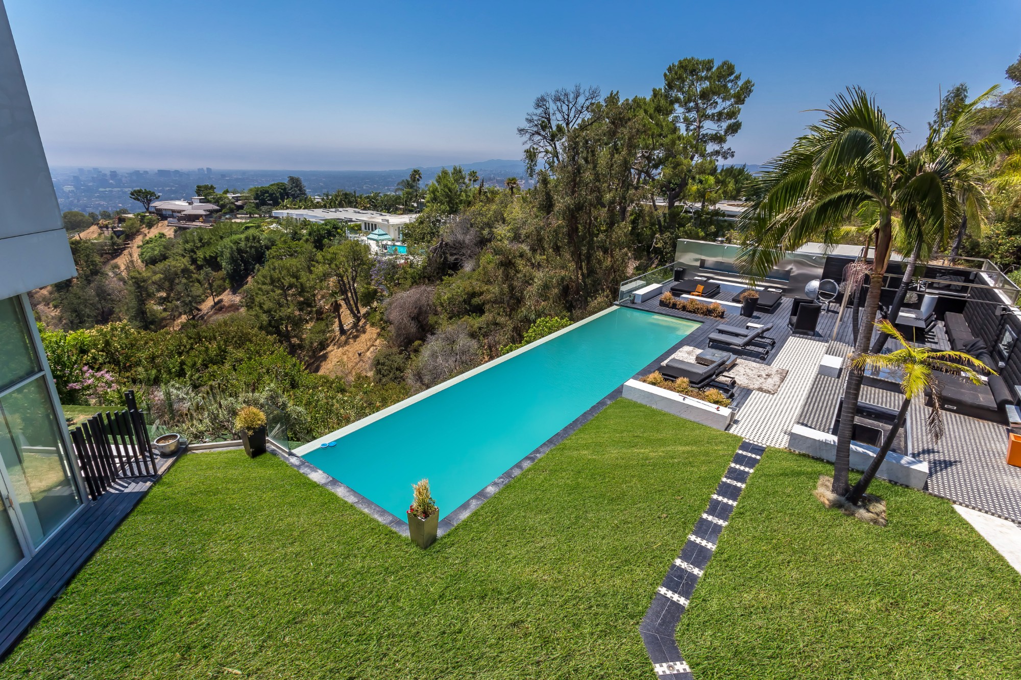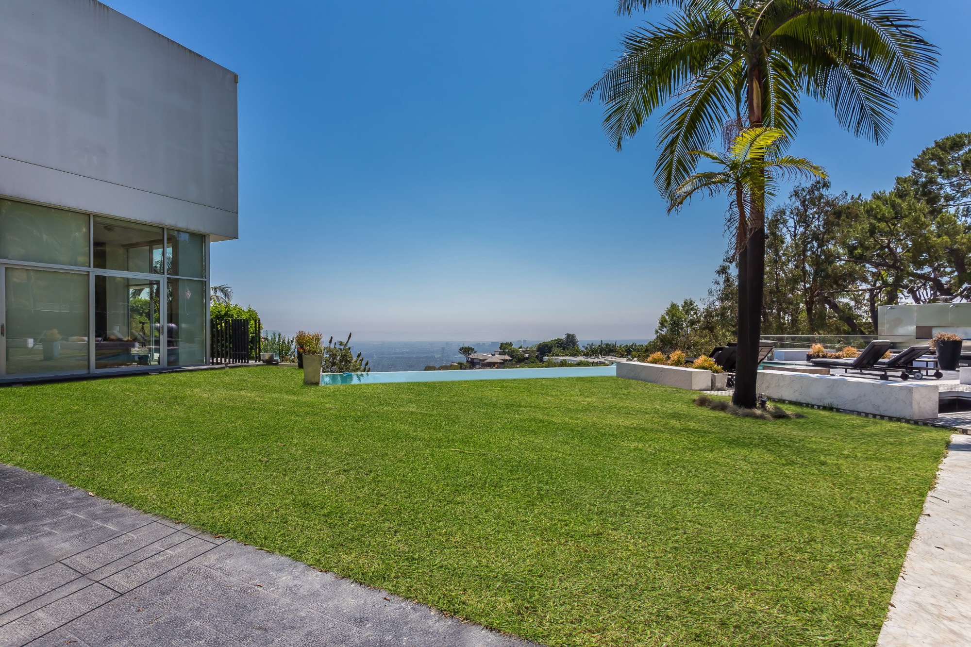 A contemporary architectural masterpiece in the Beverly Hills adjacent Bird Streets, with panoramic views of the city and ocean. Perched at the end of a cul-de-sac, this designer estate with guest house sits on over an acre of land with complete privacy. Offering over 9,000 sq. ft. of meticulously crafted living space, including an oversized master suite with an expansive private deck and luxurious master bath, an additional 4 beds, 7 baths, and movie theater. Pocketing Fleetwood doors open from a custom gourmet chef's kitchen to a massive entertainer's yard, replete with large grassy lawn and wooden deck, infinity edge pool and private spa, and multiple fire features.